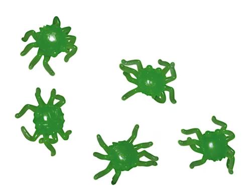 Blister con 20 ragni appiccicosi fluorescenti, perfetti per Halloween.