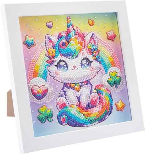 DIAMANTINY KAWAII: è un’attività crystal art per creare un mosaico fai-da-te, in rilievo, con coloratissime gemme 3D, in stile Kawaii, con un soggetto Baby Gattino in stile Unicorno.