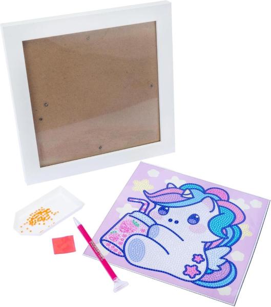 DIAMANTINY KAWAII: è un’attività crystal art per creare un mosaico fai-da-te, in rilievo, con coloratissime gemme 3D, in stile Kawaii, con un soggetto Baby Unicorno.