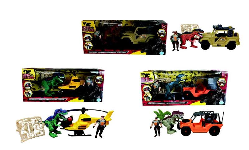 DINO WORLD - DINOSAURO C/MEZZO, PERSONAGGIO E ACCESSORI