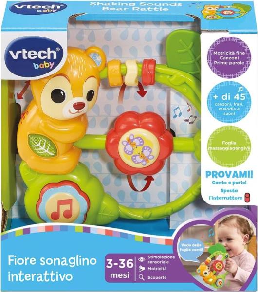 ORSETTO INTERATTIVO: Fiore è un divertente giocattolo sensoriale che stimola i sensi e la motricità del bambino attraverso luci, suoni e attività interattive, offrendo momenti di gioco sicuri e coinvolgenti