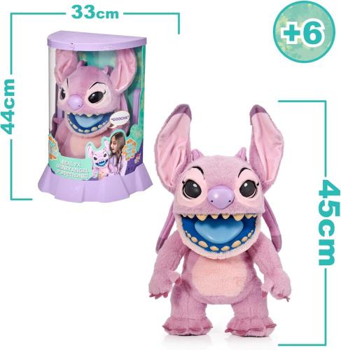 Angel, l'inseparabile amica di Stitch, arriva con un design unico che delizierà i fan di Lilo & Stitch. Con il suo mantello rosa vellutato, adorabili antenne e un sorriso affascinante, è il compagno ideale per giocare e abbracciare