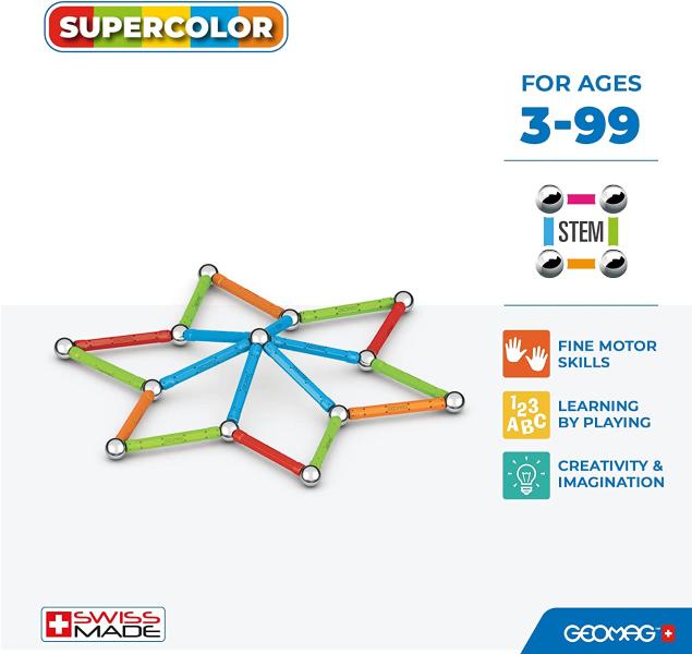 Geomag Classic è un gioco di costruzione basato sulle magiche forze del magnetismo, ideale per creare modelli 3D senza limiti, liberando la creatività e l'immaginazione. Adatto a partire dai 3 anni