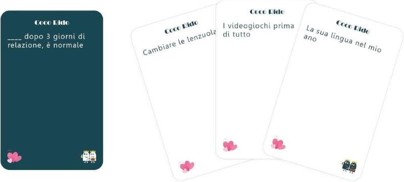 Un giocatore prende legge una carta domanda e gli altri giocatori scelgono tra le carte risposta del proprio mazzo, quella che, collegata alla carta base, risulterebbe più divertente