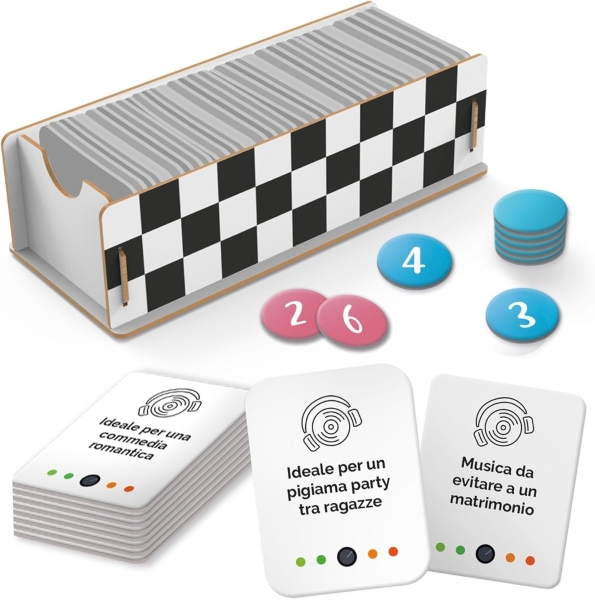 Un originale PARTY GAME per mettere alla prova la tua intelligenza musicale. Adatto a bambini, ragazzi, adulti e tutta la famiglia.