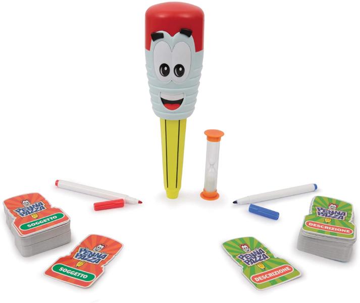 Contenuto: penna, 150 carte (75 tematiche e 75 descrittive), 2 pennarelli, 2 lavagnette per disegnare, 1 clessidra