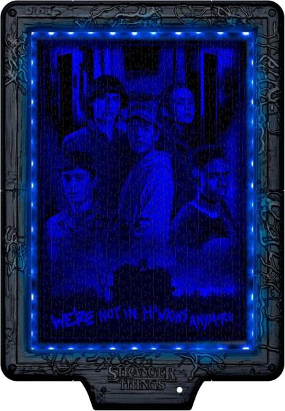 STRANGER THINGS: quadro interattivo contenente un puzzle da 520 pezzi con illustrazione ufficiale di Stranger Things, che si trasforma grazie alla striscia LED RGB, svelando la caccia del Demogorgone, i volti iconici dei protagonisti e Undici in una scena ricca di tensione e atmosfera