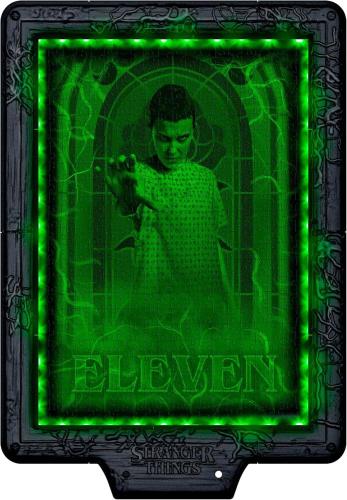 COME GIOCARE: unisci i pezzi, monta la cornice e vivi la trasformazione: con la luce del giorno appare la scena principale, con LED rosso il Demogorgone, con luce blu il gruppo di amici con la frase "We’re not in Hawkins anymore", con luce verde Undici pronta a combattere