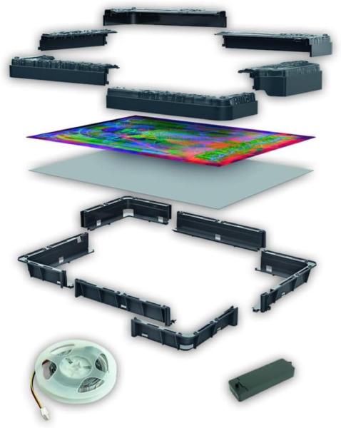 COSA CONTIENE: quadro interattivo contenente un puzzle da da 520 pezzi (49x36 cm), cornice in plastica da assemblare, colla, poster guida, modulo elettronico con striscia LED RGB e istruzioni dettagliate per creare un quadro luminoso da esporre nella tua collezione dedicata alla serie