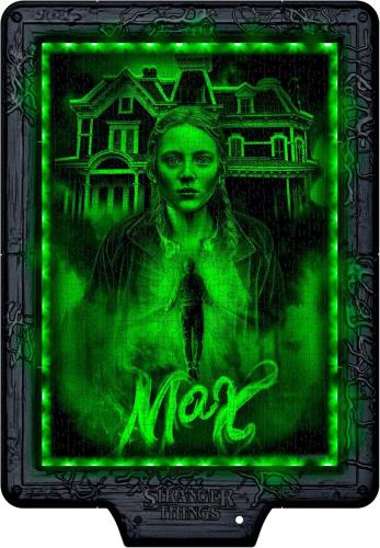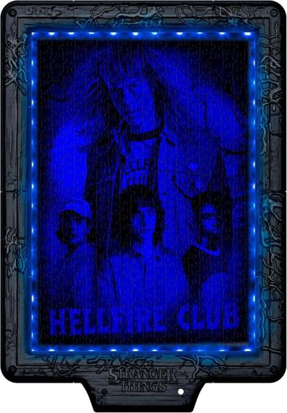 STRANGER THINGS: quadro interattivo contenente un puzzle da 520 pezzi con illustrazione ufficiale di Stranger Things dedicata alla maledizione di Vecna, grazie alla striscia LED RGB la scena si trasforma rivelando Vecna, il gruppo Hellfire Club e Max in momenti iconici della stagione 4