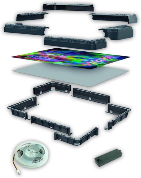 COSA CONTIENE: quadro interattivo contenente un puzzle da 520 pezzi (49x36 cm), cornice in plastica da assemblare, colla, poster guida, modulo elettronico con striscia LED RGB e istruzioni dettagliate per creare un quadro luminoso da esporre nella tua collezione dedicata alla serie