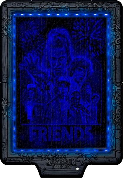 STRANGER THINGS: quadro interattivo contenente un puzzle da 520 pezzi con illustrazione ufficiale di Stranger Things, che si trasforma con una striscia LED RGB, rivelando scene iconiche con Undici, i personaggi di Hawkins e il Mind Flayer per un effetto visivo sorprendente e unico