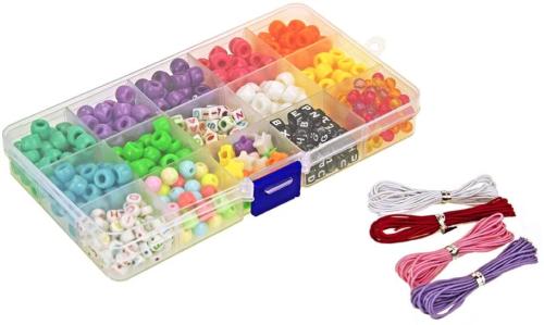 Confezione di perline ABC, fornita di oltre 1500 pezzi e 4 matassine (8 m ) di filo elastico colorato con cui creare oltre 30 braccialetti! Contiene più di 12 tipi diversi di perline oltre ad un contenitore dove riporle ordinatamente.