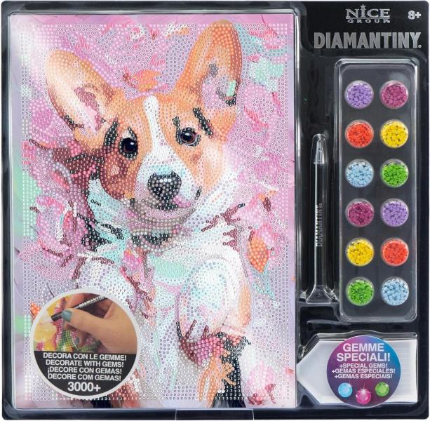 DIAMANTINY LEVEL UP: è l’attività crystal art per creare mosaici fai-da-te, in rilievo, con coloratissime gemme 3D. Disponibile nella versione Cane COCCOLONE Corgi da gemmare.