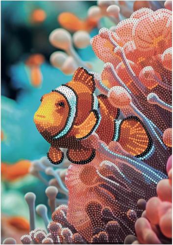 TECNICA: per decorare il mosaico del Pesce Pagliaccio devi utilizzare la tecnica "crystal art, colora con i numeri", applicando le gemme ai numeri. Il foglio di istruzioni ti guida nell’applicazione.