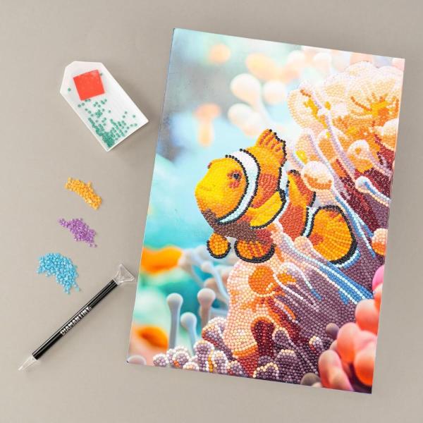 DIAMANTINY LEVEL UP: è l’attività crystal art per creare mosaici fai-da-te, in rilievo, con coloratissime gemme 3D. Disponibile nella versione MONDO MARINO Clown Fish da gemmare.
