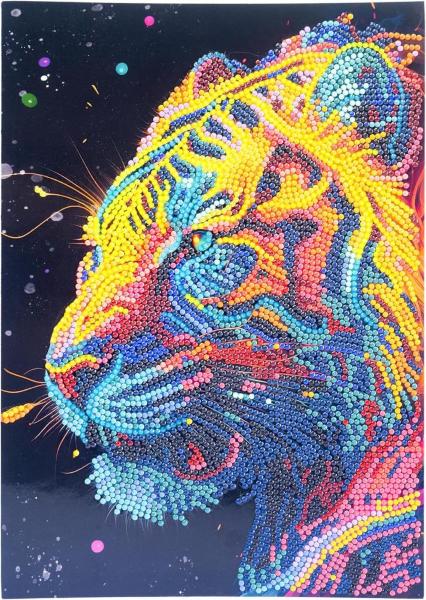 DIAMANTINY LEVEL UP: è l’attività crystal art per creare mosaici fai-da-te, in rilievo, con coloratissime gemme 3D. Disponibile nella versione POP Tigre da gemmare.