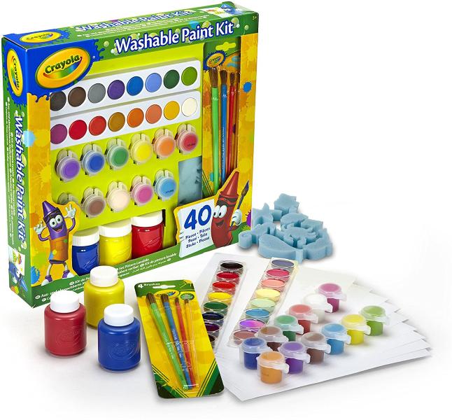 CRAYOLA SET PITTURA LAVABILE: ricco contenuto di 40 pezzi che include tempere, acquerelli, pennelli e spugnette