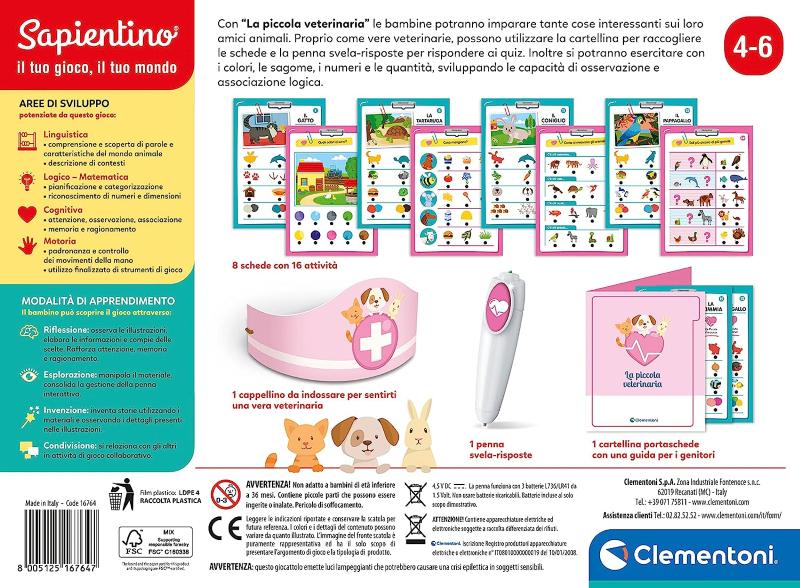 SAPIENTINO 4 ANNI: Un gioco classico pensato per l'età prescolare, che coinvolge i più piccoli grazie al role play. Consigliato a partire dai 4 anni. Made in Italy