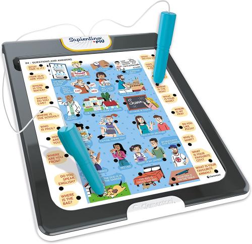 AREE DI SVILUPPO E TARGET: Un gioco educativo scolare che aiuta il bambino a sviluppare il linguaggio, la capacità di associazione e la memorizzazione di una nuova lingua. Un gioco elettronico parlante pensato per bambini dai 7 anni. Made in Italy.