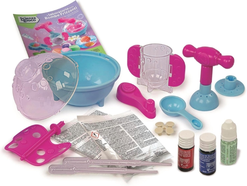 COSA CONTIENE: gioco scientifico Made in Italy adatto per bambine da 8 anni in su, include ingredienti e strumenti per creare bombe frizzanti, con manuale scientifico illustrato
