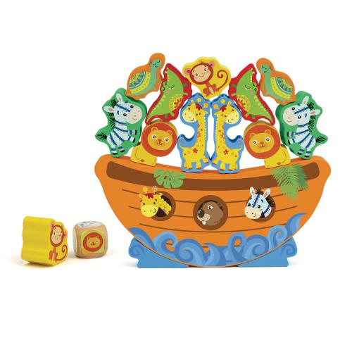 Gioco di equilibrio che comprende 12 animali! Tira il dado e posiziona l'animale dello stesso colore sull'arca ma attenzione a non farlo cadere!