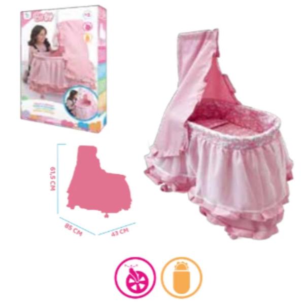 Le ruote facilitano lo spostamento della culla. La copertina incluse rende l'esperienza ancora più realistica, offrendo la possibilità di coccolare e prendersi cura della bambola, proprio come farebbe con un vero neonato. Il baldacchino protegge la bambola dal "sole", creando un angolo speciale dove riposare.