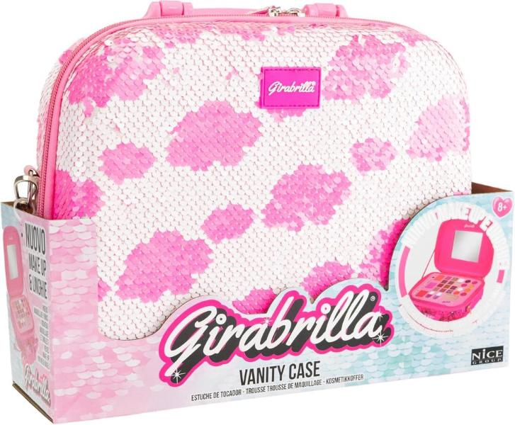 Scintillante valigetta Girabrilla Make Up case BIANCA con Nuvole ROSA