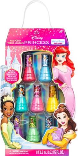 Il set include 8 smalti ad acqua dai colori vivaci, ispirati alle iconiche Principesse Disney. La formula ad acqua è facile da applicare e da rimuovere, basta semplicemente acqua tiepida: niente solventi, niente odori forti, perfetto per i bambini.