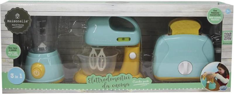 MINI ELETTRODOMESTICI: Il set Maisonelle Mini Elettrodomestici comprende tre elettrodomestici giocattolo: impastatrice, frullatore e tostapane. Un'ottima scelta per i piccoli amanti della cucina.