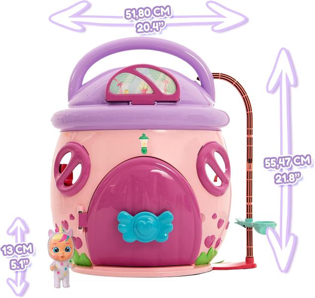 Scopri la mega casa di Dreamy da Cry Babies Magical Tears! Con questa incredibile e grande casa, i bambini avranno il posto migliore per ricreare le storie con i loro personaggi preferiti di Cry Babies Magical Tears. Questa Mega House include il personaggio esclusivo di Dreamy. All'interno puoi scoprire più di 25 accessori con un gameplay diverso. Inoltre, le lacrime magiche hanno attivazioni a sorpresa: nello specchio, nel forno e in giardino! Puoi rilassarti sull'amaca, fare il bagno, dormire sul letto in camera, vestire Dreamy, cucinare e utilizzare l'ascensore per scoprire tante altre sorprese. Questo playset include luci e suoni. Divertiti a giocare con Dreamy e altri personaggi di Cry Babies Magical Tears in questa fantastica Mega House!