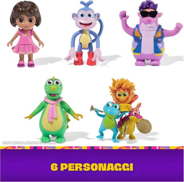 Un mondo da scoprire e collezionare: i giocattoli di Dora l'esploratrice sono pensati per bambini in età prescolare e includono bambole, accessori per casa delle bambole, giocattoli per il gioco di finzione e giocattoli musicali, come microfoni giocattolo e chitarre giocattolo per bambini