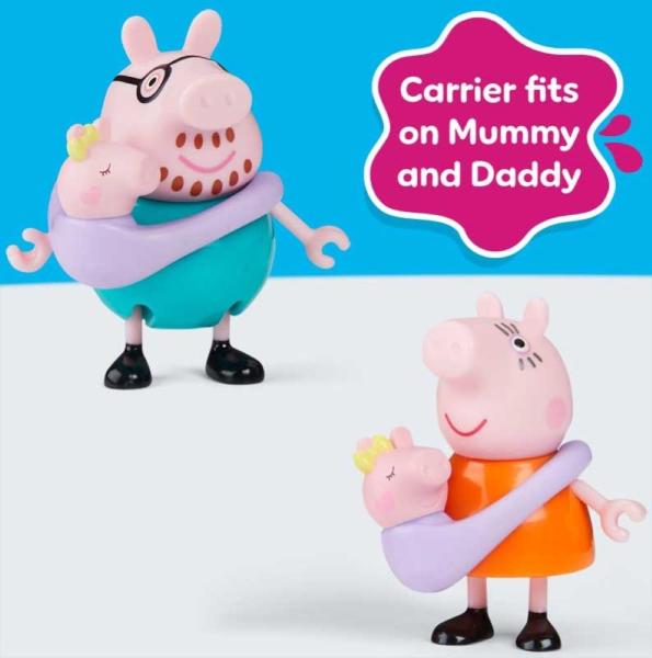 La famiglia Pig è ora una famiglia di cinque persone! Questo set di giocattoli di Peppa Pig include Papà Pig, Mamma Pig, George, Peppa e Baby Evie nel suo marsupio. I più piccoli possono mettere il marsupio a Mamma o Papà Pig e ricreare le loro scene preferite dello show o raccontare nuove storie. I personaggi snodabili possono persino tenersi per mano per dolci momenti in famiglia. Giocattoli come il set di personaggi della famiglia di cinque di Peppa sono ottimi regali per bambine e bambini dai 3 anni in su.