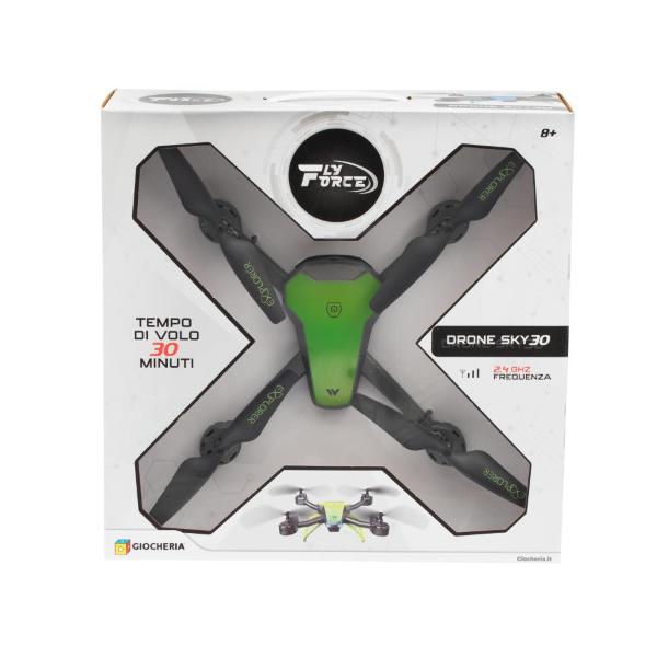 Drone radiocomandato con telecamera Wi-fi 1080P con cui è possibile girare video o scattare foto, l'autonomia di volo è di 30 minuti e grazie alle luci led vola anche al buio. E' possibile pilotarlo senza trasmettitore tramite APP. Disponibile in 2 colori, verde elettrico e blu.