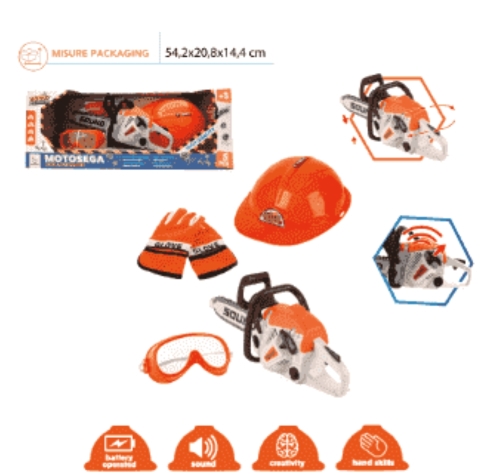 MOTOSEGA CON CASCO, GUANTI, OCCHIALI