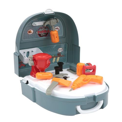 Pratico zaino che si trasforma in un piccolo banco lavoro, completo di tanti attrezzi per il fai da te.