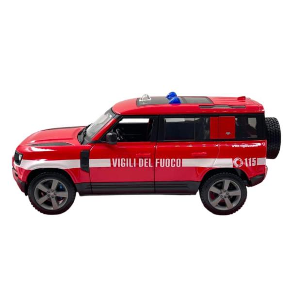 SCALA DETTAGLIATA: Modellino Land Rover Defender 110 dei Vigili del Fuoco in scala 1/24, riprodotto con precisione nei minimi dettagli
