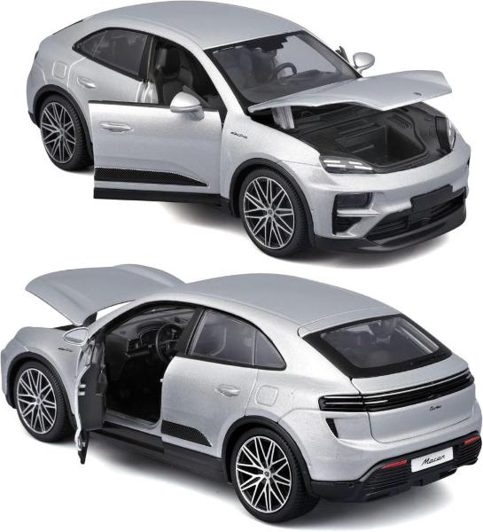 PORSCHE MACAN 4 ELECTRIC: Replica ufficiale in scala 1:24 del SUV elettrico Porsche, con linee dinamiche e dettagli curati che riproducono fedelmente l’innovativo design del modello originale.