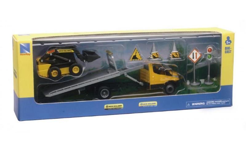 CAMION IVECO DAILY ROLL-OFF CON NEW HOLAND B110C E NEW HOLLAND SKID STEER SCALA 1:32