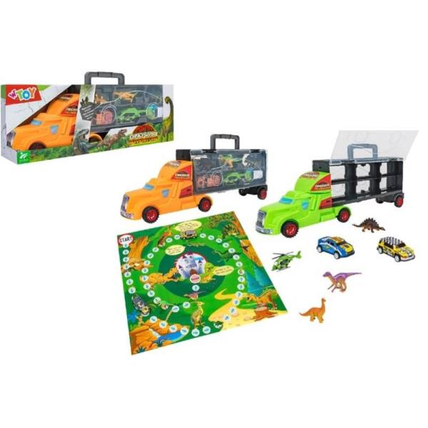 WTOY CAMION C/VEICOLI E DINOSAURI 6PZ 2 COL C/MAPPA