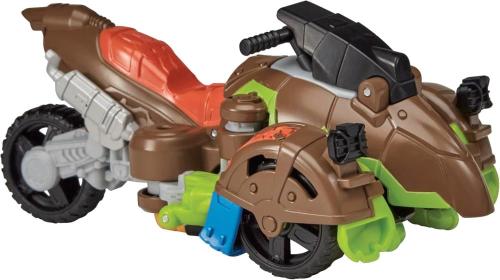 MUTATE: Leonardo sta ricevendo un'altra mutazione, non è necessaria alcuna melma! Per trasformare il tuo ninja in un veicolo a tre ruote, sganciare la parte posteriore del manubrio della figura e farlo scorrere in avanti verso la testa di Leo. Per tornare a diventare una tartaruga, sollevare ancora una volta la parte del manubrio e scivolare verso il retro del veicolo.