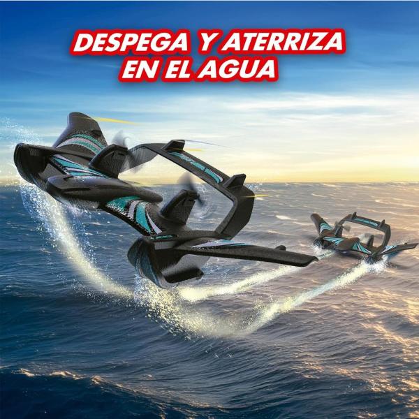 Tutto incluso per decollare: il set contiene l'aereo, un telecomando di controllo e un cavo USB per una facile ricarica. Preparati a solcare i cieli e scivolare nell'acqua!