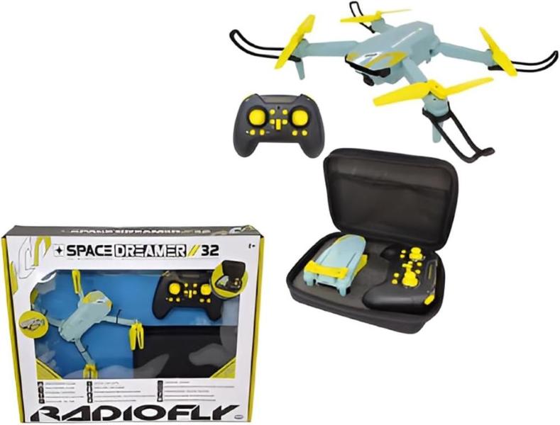 **Radiofly - Drone Space Dreamer Radiocomandato**Esplora il cielo con il drone **Space Dreamer** di Radiofly, progettato per voli agili e divertenti.- **Facile da usare**: Il radiocomando incluso consente un controllo intuitivo, perfetto per chi vuole iniziare a volare.- **Design compatto e portatile**: Include una pratica custodia per trasportare il drone e il radiocomando ovunque.- **Performance stabili**: Dotato di eliche resistenti e di protezioni, ideale per voli sicuri e controllati.- **Pronto al volo**: Nessuna necessità di montaggio complesso, puoi iniziare a volare subito!Un drone pensato per divertirsi e scoprire il mondo dall'alto!