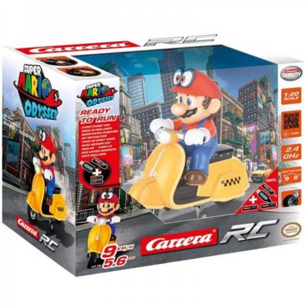 Articolo consegnato: 1 x Carrera RC Super Mario Odyssey Scooter in scala 1:20 con Super Mario / 2 x Batterie ricaricabili, cavo di ricarica USB e telecomando inclusi / 28 x 8 cm / Gialla