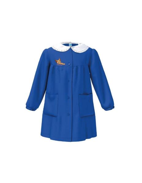 Grembiule scuola da bambina dotato di chiusura con bottoni, colletto removibile, tasche e ricamo gatto.