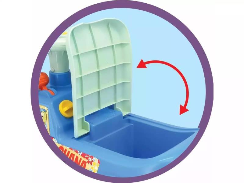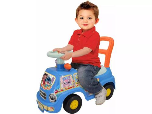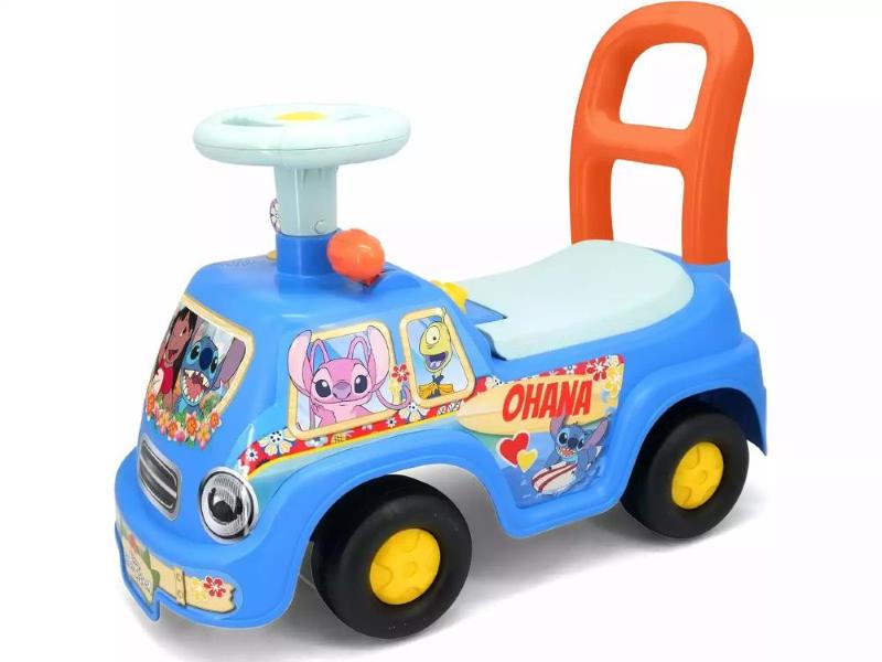 Include: 1 cavalcabile blu con disegno speciale di Stitch, luci, pulsanti speciali che attivano i suoni, area di stoccaggio sotto il sedile, volante con clacson, ruote in plastica con striscia antiscivolo, schienale rimovibile e molti altri fantastici dettagli.