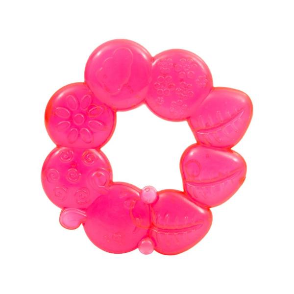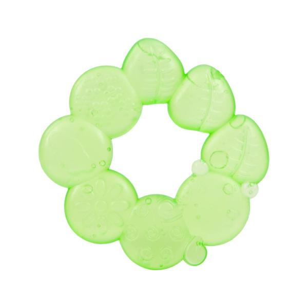 Anelli in plastica morbida contenente un gel refrigerante per dare sollievo alle gengive del neonato durante la dentizione.
