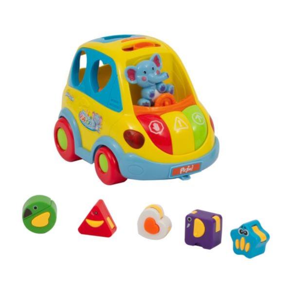 Automobile motorizzata con divertente movimento "mistero". Dotata di luci, effetti sonori e divertenti musiche che si combinano ad un simpatico gioco di incastri con 5 formine trasformabili. L’auto, riconoscendo le formine inserite, pronuncerà la forma ed il colore di quest’ultima. Il giocattolo può trasformarsi da veicolo motorizzato a veicolo a ruota libera spostando il cursore.