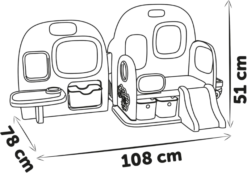 5 postazioni gioco: Proprio come un vero asilo nido, la casa delle bambole è dotata di: 1. zona ingresso, 2. zona giochi, 3. bagno, 4. zona notte con scivolo, 5. zona pranzo e creativa.