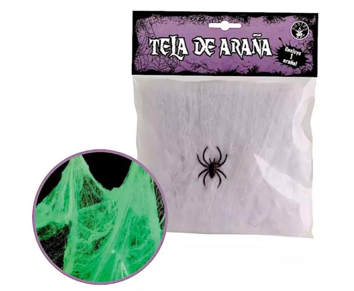 Mini ragnatela bianca fosforescente, decorazione luminosa per Halloween.